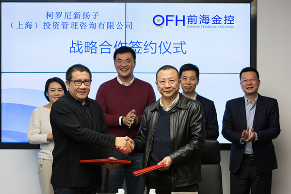 根據協議,前海金控與中投保、柯羅尼新揚子將在多領域展開全面戰略合作,發揮各自優勢,共同投入優勢資源,拓展市場,實現互利共贏。合作領域包括資產管理、擔保業務、地產基金及新興產業基金、資產證券化、海外投資、城市新空間等。