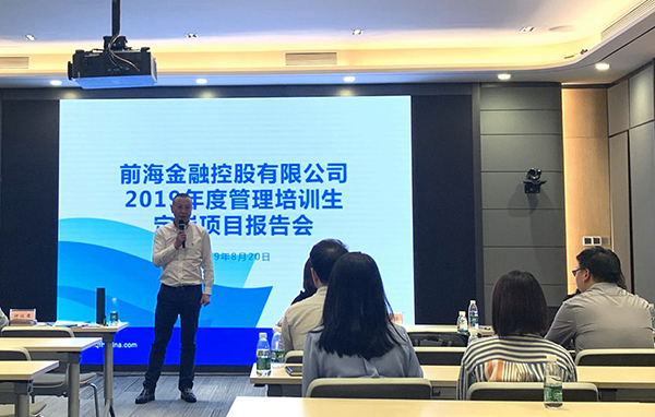 8月20日下午,前海金控在基金小鎮路演中心舉辦了2019年度管理培訓生項目報告會,前海金控黨委副書記、總經理孟曉出席,相關部門負責人、工作導師及公司其他員工參會。