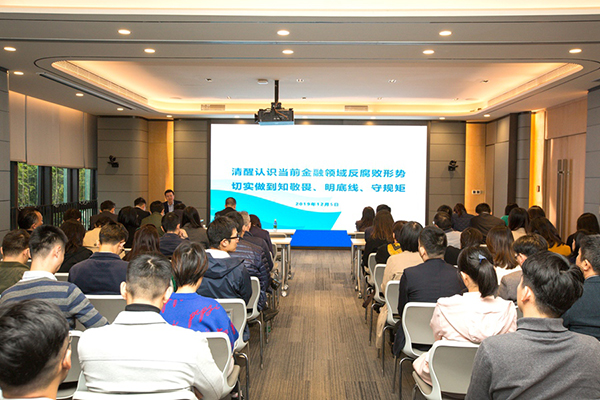 李劍峰同志從當前金融領域的反腐敗現實形勢切入,歸納提煉金融領域腐敗案件的共性特點,結合前海黨工委、紀工委近年來的反腐敗工作成果和工作要求,對公司的廉潔風險防控現狀進行了深入剖析,提出要進一步加強“不敢腐”的內部監督機制,進一步完善“不能腐”的內部控制體系,和進一步深化“不想腐”的廉政文化建設。