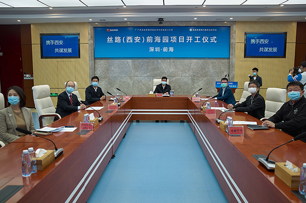 為深入貫徹落實習近平總書記關于統籌做好疫情防控和經濟社會發展工作的重要指示精神,2月23日上午,前海蛇口自貿片區聯合西安市高新區舉行絲路(西安)前海園線上開工儀式。深圳市委常委、前海合作區黨工委書記、前海蛇口自貿片區管委會主任田夫,西安市委常委、高新區黨工委書記、航天基地黨工委書記鐘洪江分別在前海和西安會場出席活動。開工儀式由西安市高新區黨工委副書記、管委會主任齊海兵主持,前海合作區黨工委委員、前海蛇口自貿片區管委會副主任王錦俠發表致辭。