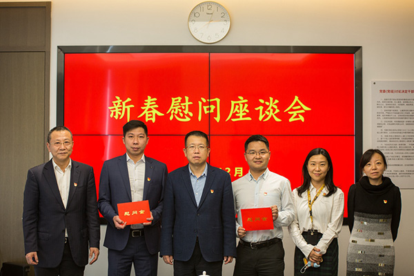 在新春佳節(jié)到來之際,2月7日下午,前海深港現(xiàn)代服務(wù)業(yè)合作區(qū)黨工委委員、前海管理局副局長袁富勇到前海金控公司看望慰問疫情防控、應(yīng)急值守一線防疫工作人員王爾璞、羅元同志,為他們送上慰問金和節(jié)日問候,并進(jìn)行了座談交流。