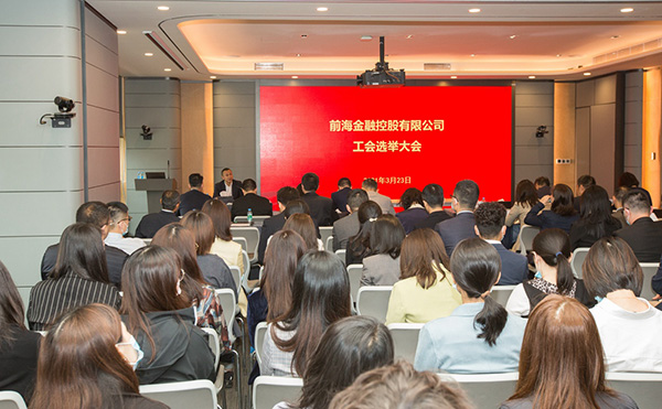 3月23日下午,前海金融控股有限公司工會委員會組織召開換屆選舉大會,95名工會會員參加會議。大會由董事長孟曉同志主持,總經理李劍峰等公司領導出席會議。
