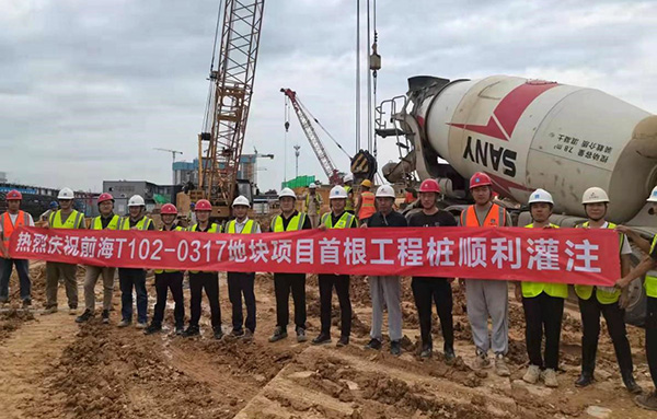 前海金融總部大廈項目于9月18日取得樁基礎工程施工許可證以來,緊鑼密鼓開展樁基施工相關準備工作。近日,該項目首根工程樁順利澆筑。