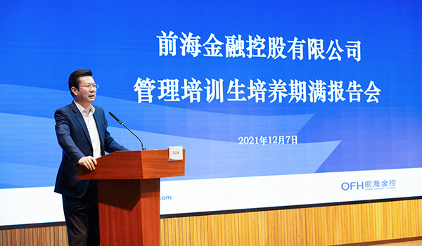 12月7日,前海金控舉辦了2021年度管理培訓生培養期滿報告會。前海金控黨委副書記、總經理李劍峰,資深專家孫抱平,黨委副書記王凡,副總經理舒東,首席風控官黃鍵作為評議人員出席會議,管理培訓生部門負責人、指導員及公司其他員工參會。