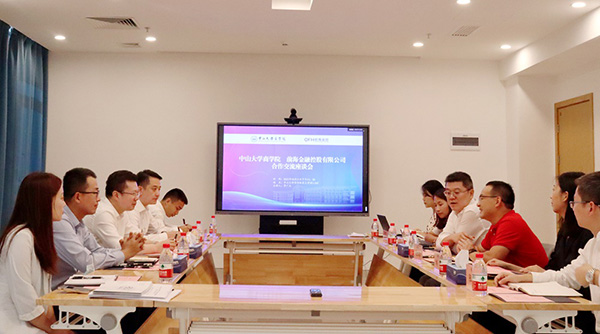 近日,前海金控黨委副書記、總經(jīng)理李劍峰帶隊拜訪中山大學(xué)商學(xué)院,與院長李廣眾、黨支部書記龍長春開展合作交流座談。中山大學(xué)部分教職人員、前海金控首席風(fēng)控官黃鍵及部分研究人員參會。