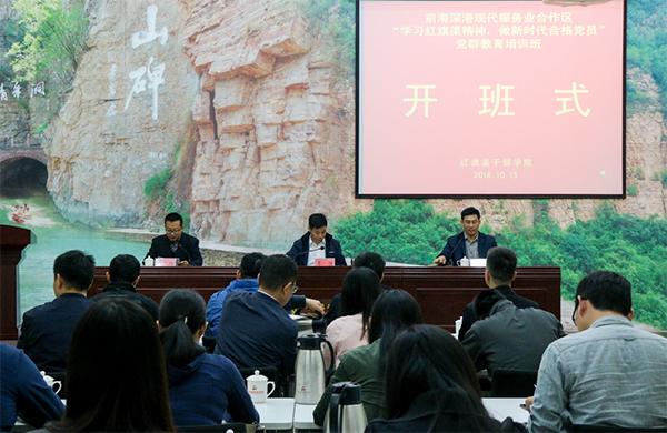 在經過10個小時的長途跋涉后,一到紅旗渠干部學院,大家立刻投入到學習當中。開班儀式上,紅旗渠干部學院副院長陳東輝同志簡要介紹了林州市歷史人文以及紅旗渠精神在我國黨性教育領域的重要地位,并對學員們不顧旅途勞累、放下行李就緊張地投入學習的精神表示肯定。前海金控黨委書記、董事長、前海金融同業公會會長李強同志結合紅旗渠修筑的歷史史實,分享了自己的學習心得,并對此次培訓提出了要求和希望。李強同志指出,要學習踐行紅旗渠精神和楊貴老書記兢兢業業、不計個人得失和勇于拼搏的工作精神;要繼承和發揚楊貴老書記求真務實、無私奉獻的創業精神;要發揚紅旗渠的“責任碑”精神,進一步提高工作中的責任意識,做好工作中的每個細節、每一個環節;要立足前海,充分發揮“國家金融業對外開放試驗示范窗口”和“跨境人民幣業務創新試驗區”作用,為國家金融創新和開放提供更多可以復制推廣的經驗,不辜負總書記的期望和重托。