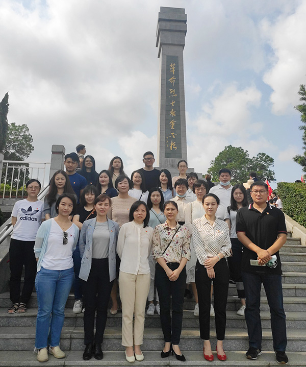 全體黨員首先來到洪田七烈士墓緬懷先烈。在市知識產權保護中心黨支部副書記鄧愛科同志和金控黨委副書記王凡同志的帶領下,大家沿著層層階梯拾級而上,懷著沉重的心情向在抗日及革命戰爭中犧牲的英烈致敬,深刻體會革命先烈舍生取義的革命精神,感謝他們浴血奮戰帶給我們今天的安定生活。