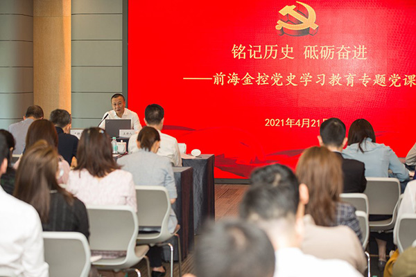 隨后,深圳市黨史辦副主任王地久應邀作黨史學習教育專題宣講。貫穿黨史和深圳改革開放史,從深圳的前世今生出發,全面介紹了深圳的歷史變遷、特區早期的改革探索、推動特區建立和改革發展的重要歷史人物以及特區成立40年以來的重大改革探索與成效等內容,并對今后如何進一步深化黨史學習教育進行了系統深入解讀,為大家深入貫徹前海合作區黨工委黨史學習教育方案,落實國家戰略、深化深港更緊密合作、加快建設國際化城市新中心和金控公司發展提供了豐富的理論分析和實踐參考。