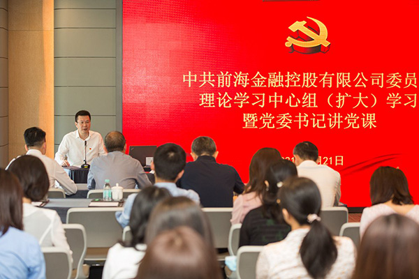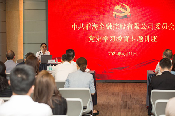 4月21日,前海金控黨委組織開展黨委理論學習中心組(擴大)學習暨黨史學習教育專題黨課。本次學習由公司黨委副書記、總經理李劍峰同志主持,公司黨委委員、各級領導、全體黨員和積極分子參加。