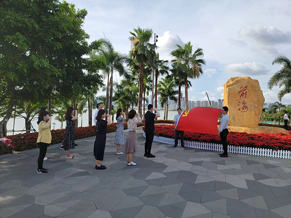 活動的第一站是前海石公園。前海石作為前海最具代表性的標志物,承載著前海精神,見證了前海從一片灘涂到一座現代化新城的蛻變。參與活動的黨員在前海石前重溫入黨誓詞,再次感受入黨宣誓時的莊嚴承諾和堅定決心,激勵自己不忘初心、牢記使命、永遠奮斗,不斷保持共產黨員的先進性,以更加飽滿的熱情投身到前海的建設工作中。