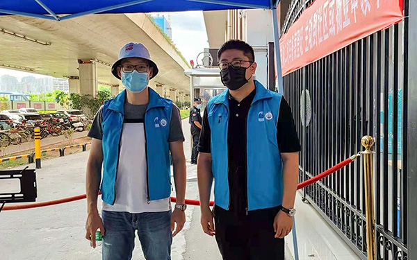 今年6月份,周松又被抽調為前海桂灣片區網格員,參與片區的防疫工作:在片區大型社區龍海家園值守、測溫,并協助片區核酸檢測工作。“記得我第一次參與核酸檢測的協助工作,剛好是一個周日的晚上。我主動報名,來到龍海家園小區的檢測現場,穿上志愿者馬甲,很有干勁。”周松在核酸檢測現場引導、組織群眾排隊,維持秩序,還到社區樓棟“掃樓”,挨家挨戶通知,即使忙到晚上11點,腿酸腳麻,他仍保持工作熱情。“感覺很有意義,龍海家園住著朋友和同事,我要守護好這片家園。”他說。此后,他積極參加專業培訓,又數次參與核酸檢測協助工作,并擔任小組聯絡員,協調小組成員到防疫一線“出任務”,為片區防疫貢獻力量。