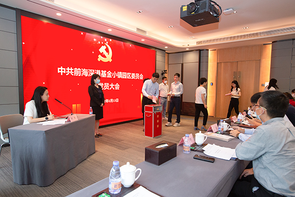 6月13日下午,中共前海深港基金小鎮園區委員會黨員大會在前海深港基金小鎮路演中心召開。