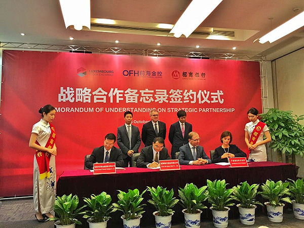 10月28日,盧森堡證券交易所(以下簡稱“盧交所”)與前海金融控股有限公司(以下簡稱“前海金控”)、招商銀行股份有限公司(以下簡稱“招商銀行”)正式簽署合作諒解備忘錄。前海金控成為國內首個與盧交所建立正式合作關系的國資金融控股企業。